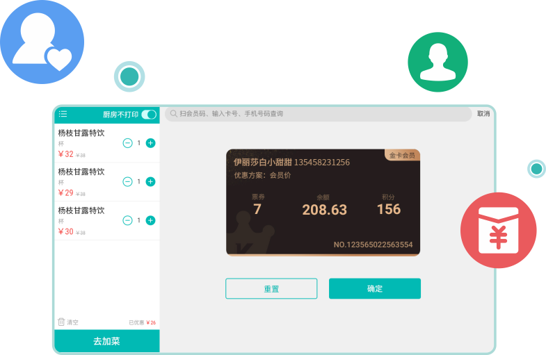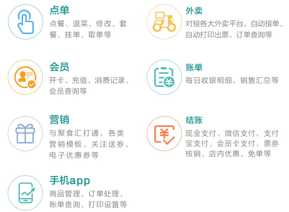 聚食匯·店+,是針對簡餐類商戶推出的一款集點餐、結賬、外賣、促銷、會員、管理與一體的安卓版智能收銀系統。