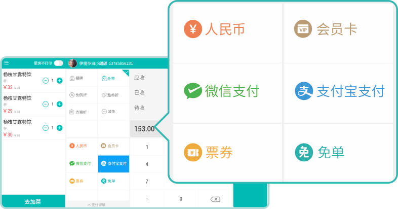 支持多種主流方式付款,提升收銀效率,告別排隊。