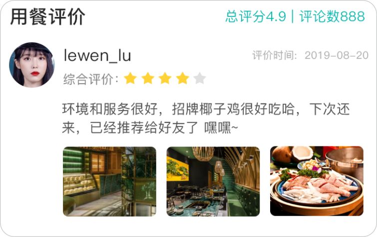 在點餐支付后和查看訂單時,都能提醒顧客用餐評價,商家可挑選優質評論展示,增加顧客好感,吸引更多顧客下單。