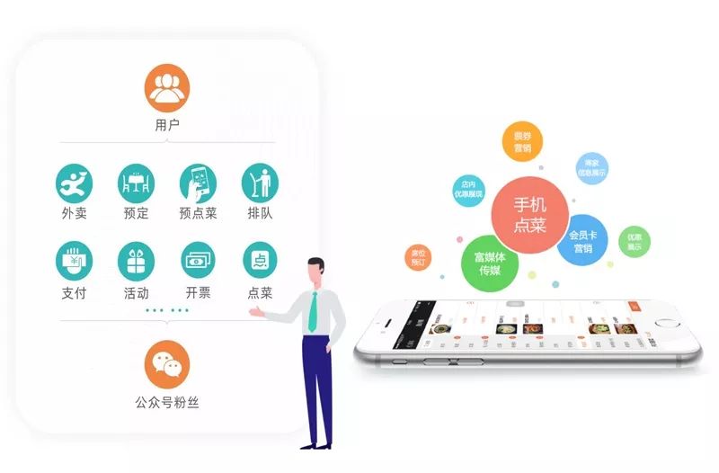 利用微信這一流量平臺,創建自己的公眾號,通過掃碼點餐、支付、會員營銷、紅包墻、等工具,與公眾號聯動,使到店顧客輕松轉化為公眾號粉絲。