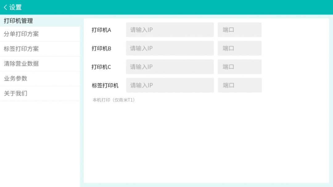 有分單/標簽打印方案、打印機管理等設置。