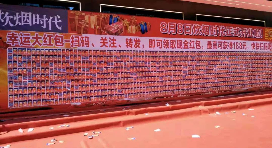 所以,在8月8日餐廳正式開業那天,炊煙時代門店外驚現一面壯觀紅包墻,“搶戲”又“吸睛”。“最高可獲得188元”的,引導人們紛紛掃碼分享朋友圈并領取現金紅包,最終,1小時不到,滿墻的紅包被“一掃而光”。