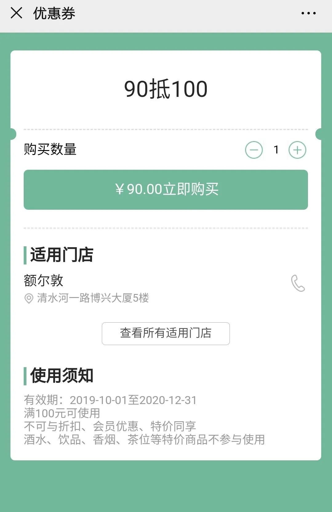 在公眾號菜單欄會員商城里,設置了可長期購買使用的90抵100元代金券,也就是只有關注了公眾號的粉絲,才會享受到這個福利,給粉絲一種專屬優惠感,也促進線下門店的交易額。