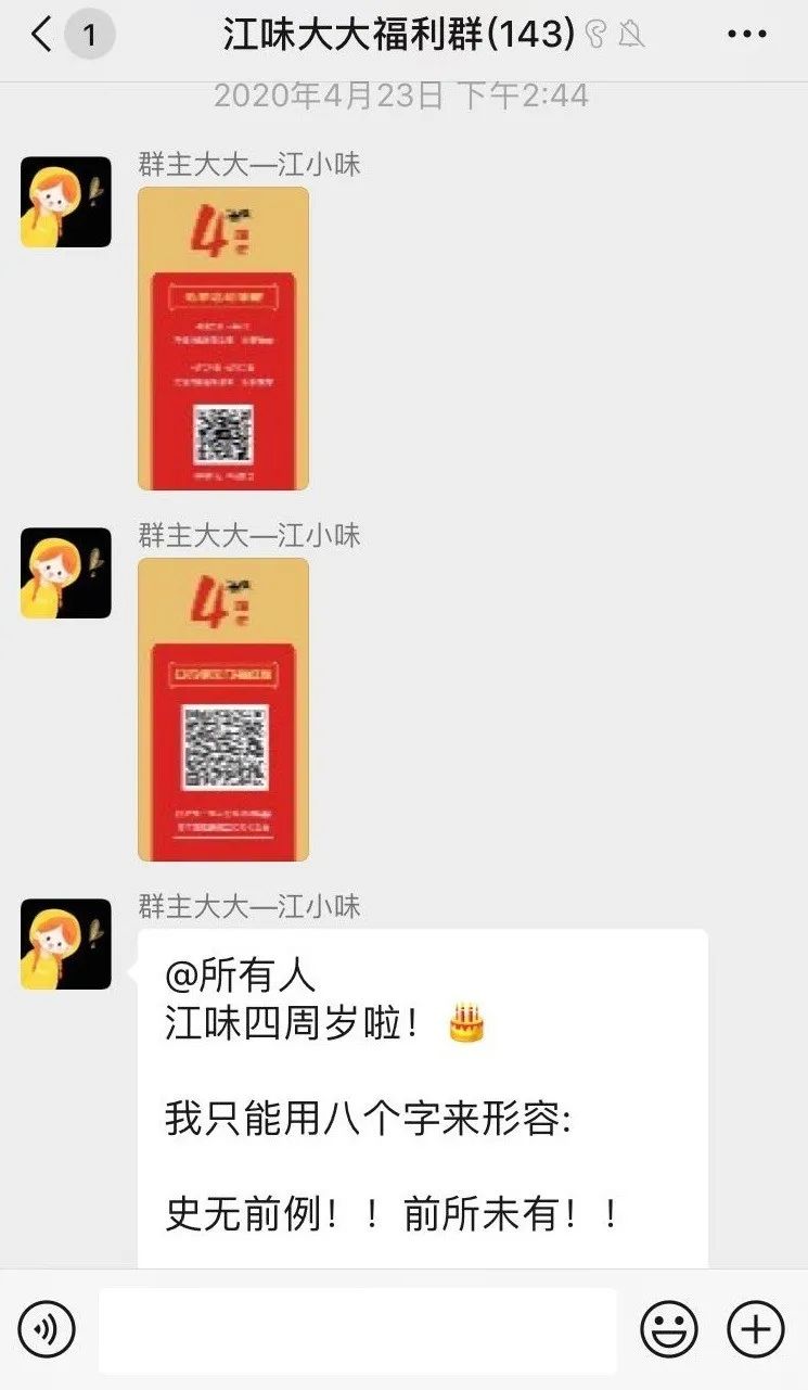 社群以海報形式群發,不僅方便粉絲對好友轉發分享,海報中的公眾號二維碼,也為公眾號吸粉引流。與粉絲互動,解答粉絲疑問,保持群內氣氛活躍,拉近距離。