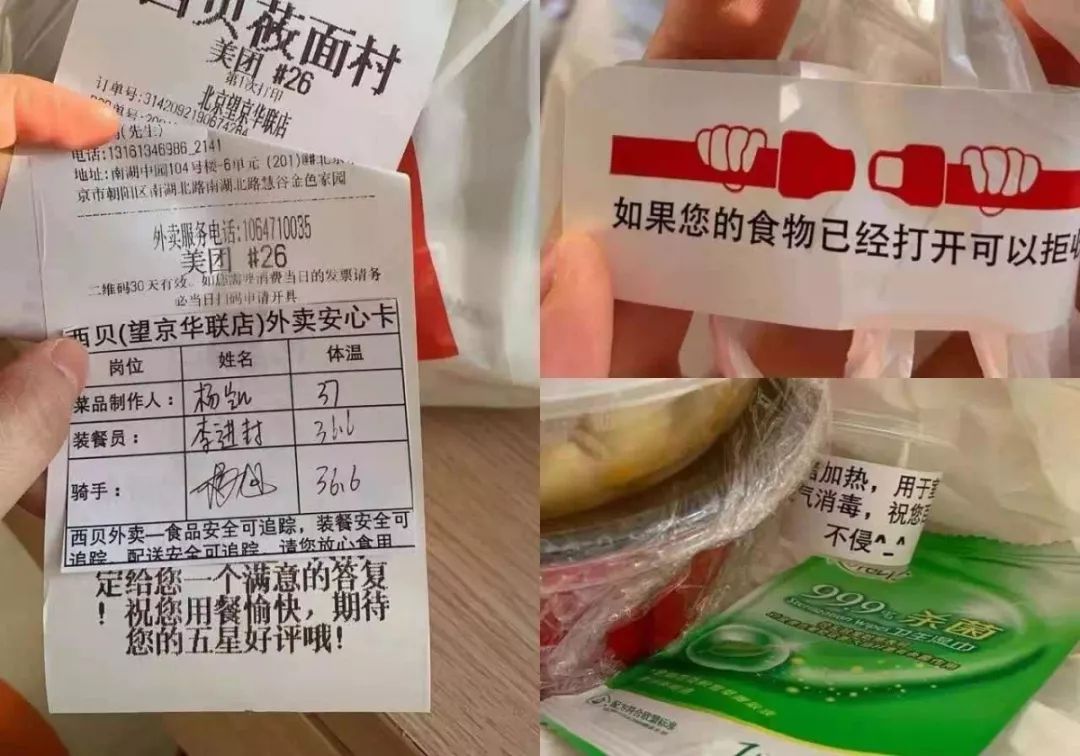 西貝在全國的三百多家門店閉店后,仍有少部分保留了外賣業務,并在外賣上延續一貫的高標準,在疫情期間,增加崗位員工體溫測試、餐具消毒兩大舉措,推出“外賣安心卡”的服務,從菜品制作、配菜、送菜每個環節的人員體溫數據都一一記錄,贏得一大波顧客好評。