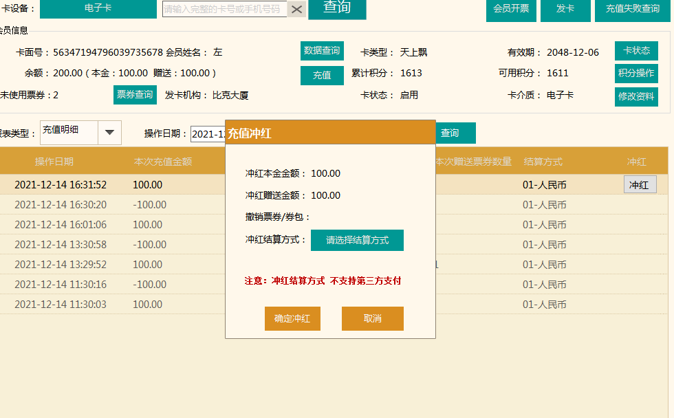4.【卡操作收銀匯總】報表,續充/調整分別增加"結算金額"列,續充本金改為實際充值的本金金額