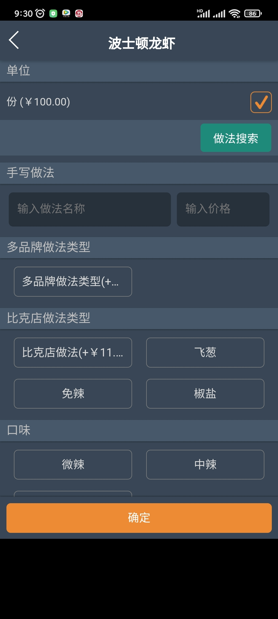 4.點菜界面,數量的“+”/“-”默認使用默認單位(開關控制)