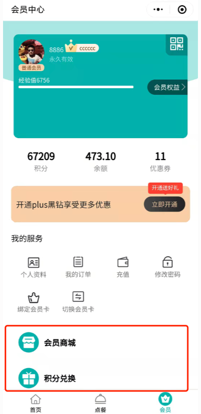 2.小程序點餐新增“會員商城”