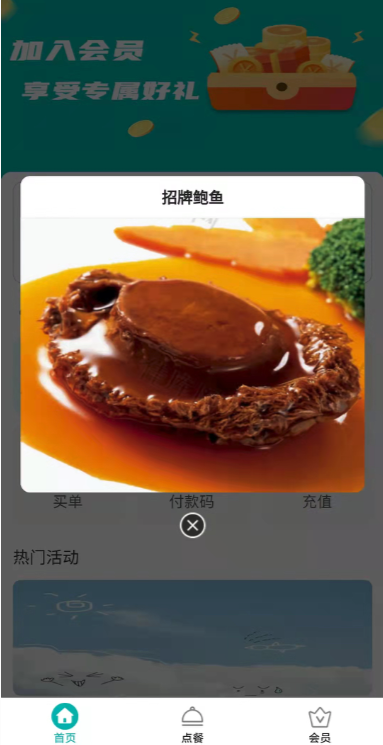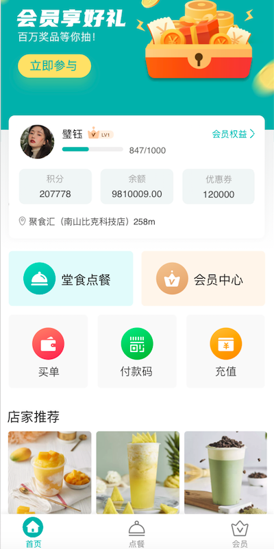 3.小程序點餐-首頁,新增可設置顯示“會員信息"(效果以實際發布的為準)