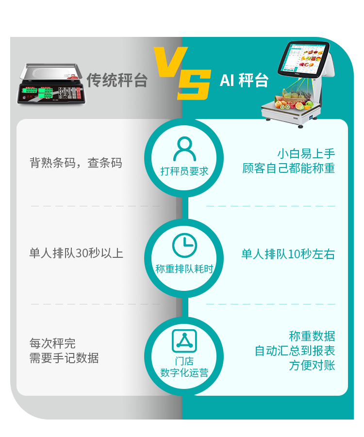 “以前打秤臺要記非常多的編碼,熟手不好招,現在有了AI秤,稱重商品像“標品”一樣在收銀臺直接結賬,省人、省事、省錢!”一位使用排隊網零售SaaS AI秤的老板如是說。