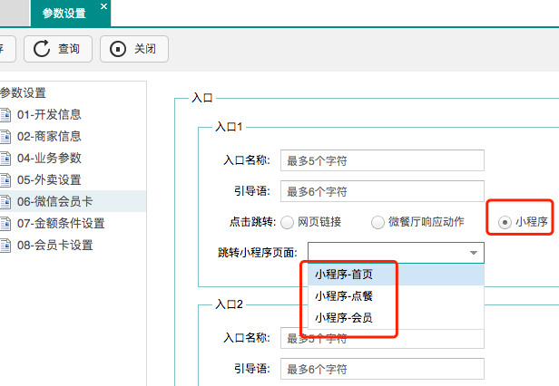 后臺【結算方式】-第三方支付-自定義,增加【啟用固定面額抵扣模式】設置增加前臺敏感及異常操作(退單、反結賬,減免金額、手動打折、余額調整)短信模板設置項微餐廳-參數設置-微信會員卡-入口設置,增加【跳轉小程序】選項基礎資料-商品中,增加【會員價】(新建會員價方案時默認引用)后臺【卡業務明細查詢】,增加前臺充值備注,對應【備注】列庫存【部門領用匯總】-部門維度增加【退倉金額】、【合計金額】增加前臺預結掃預結單二維碼后,不推送【支付提醒】開關控制微餐廳-掃碼點單設置-業務參數,增加【限制點餐范圍】設置項小程序首頁-功能按鈕自定義,增加系統默認圖標(首次使用時生效)后臺【卡業務明細查詢】-05-會員開票明細-導出,適配增加“開票額度”列多品牌-基礎資料-套餐-選擇菜品界面按品牌過濾顯示菜品