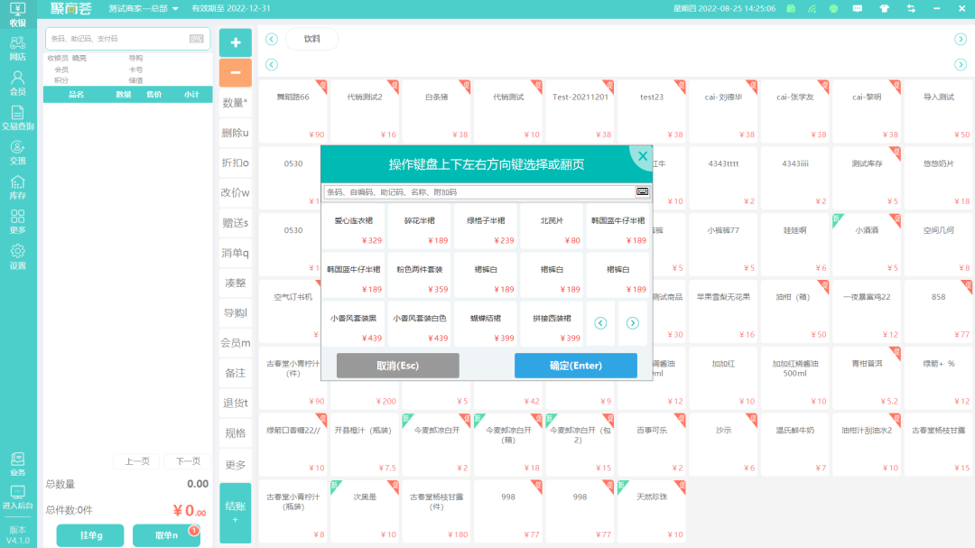 商品查詢支持中文搜索,點擊選擇即可銷售