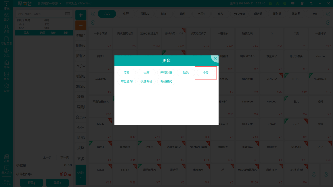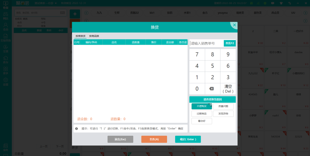 在前臺POS點選需要退貨的商品,點擊“換貨”挑選商品,結賬補差價