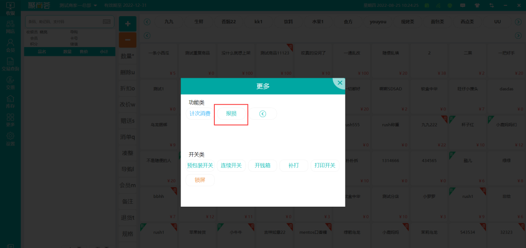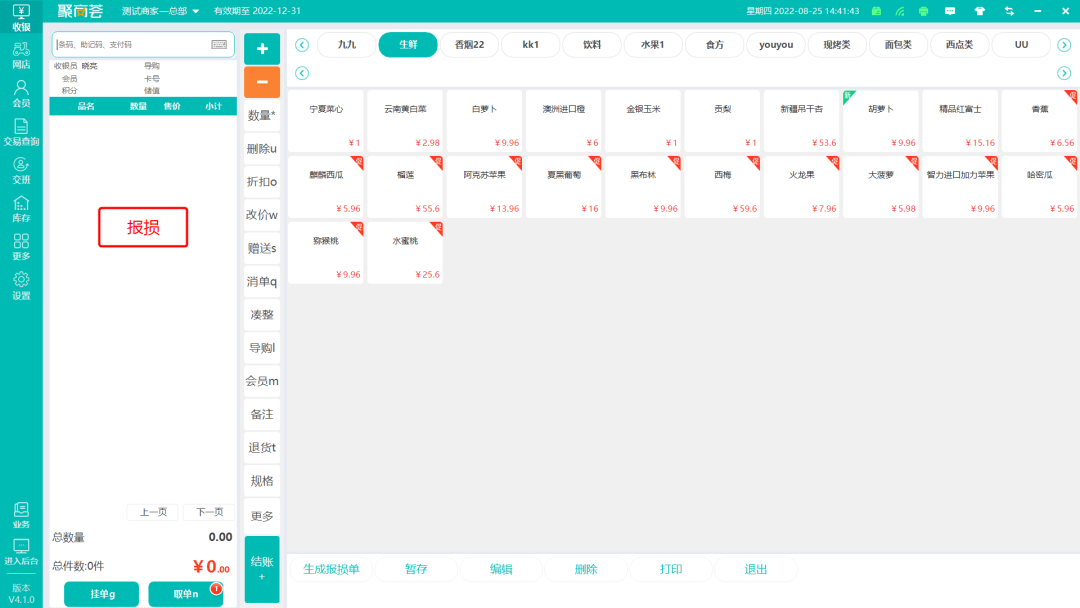 前臺可以直接選擇需要報損的商品,打印報損單小票,生成報損單
