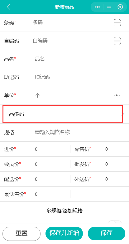 薈掌柜新建或者編輯商品,可以添加一品多碼
