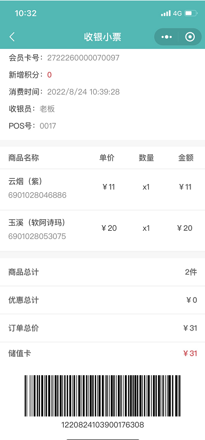 會員可以直接通過聚合微會員小程序,查詢在線下POS消費的電子小票,這個新功能減少了傳統熱敏紙小票的紙張消耗,也帶動了商戶、顧客共同踐行綠色低碳生活