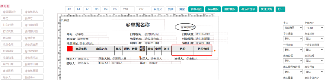 采購入庫單據自定義打印增加零售價、零售價金額字段
