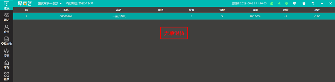 前臺鍵盤模式下,無單退貨,增加標識進行區分