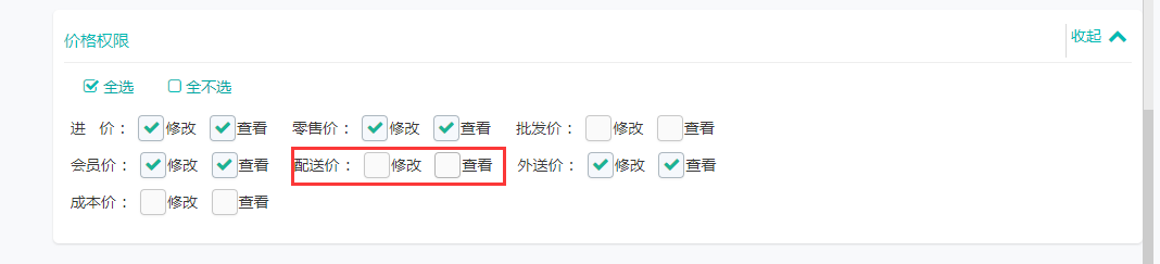 對于沒有配送價權限的員工,在要貨單,調出單,調入單以及相關報表中,無法查看到配送價格及金額