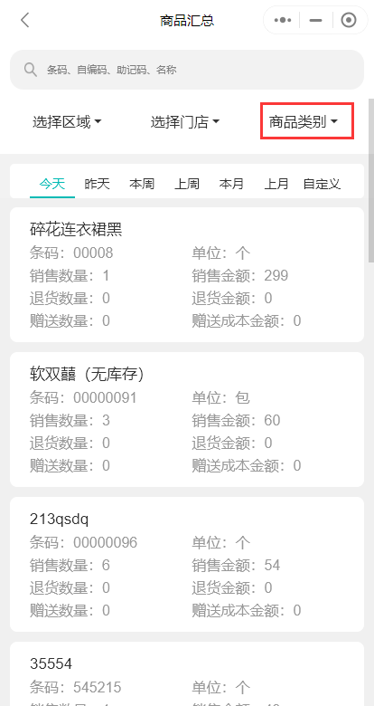 薈掌柜小程序商品匯總增加“商品類別”篩選