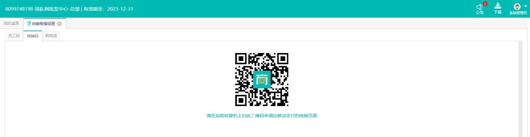 適用場景:顧客支付成功后,機器沒有顯示完成結賬界面。可以聯系店員掃核銷碼進行支付核銷,來完成本單的結賬
